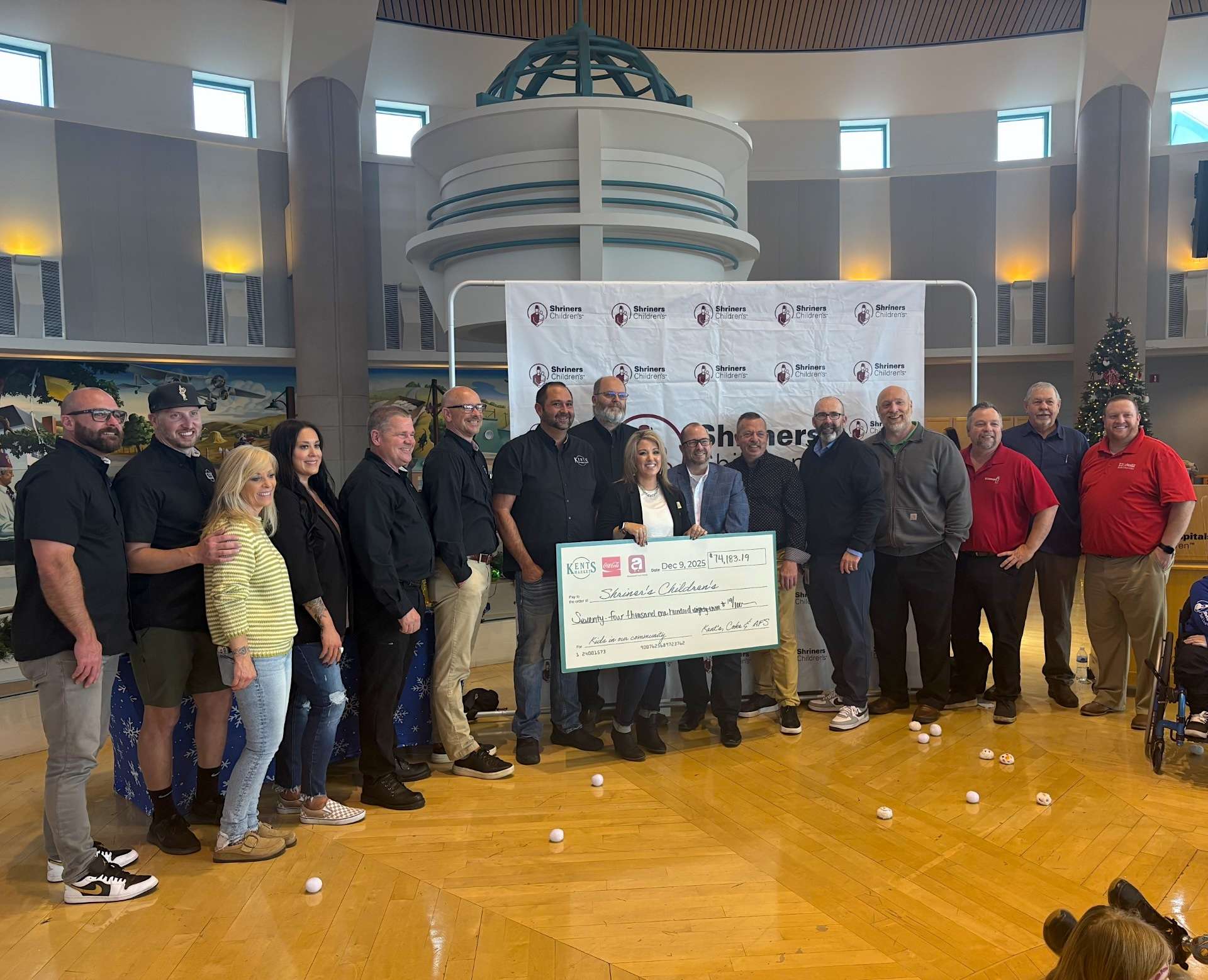 This year’s contribution reflects continued collaboration among Kent’s Market, Coca-Cola, AFS and fellow MRO retailers, who work together to raise funds throughout the holiday season. The money supports Shriners Children’s programs, which offer treatment regardless of a family’s ability to pay.