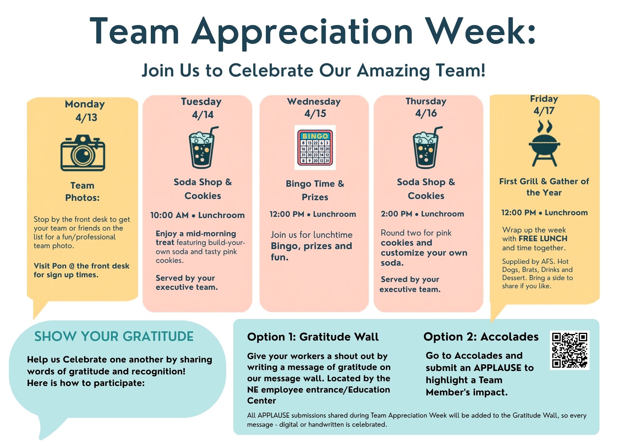 - Details: All APPLAUSE submissions shared during Team Appreciation Week will be added to the Gratitude Wall, so every message—digital or handwritten—is celebrated.